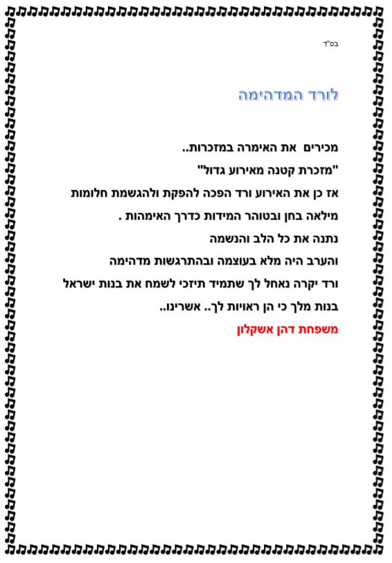 בכל פעם מחדש אני מתרגשת לשמוע ולקראאיך האירוע שהנחתי ב"ה רומם את הילדה, נתן לה ביטחון עצמי, איך נשים שמחו וחוו ערב מרומם.